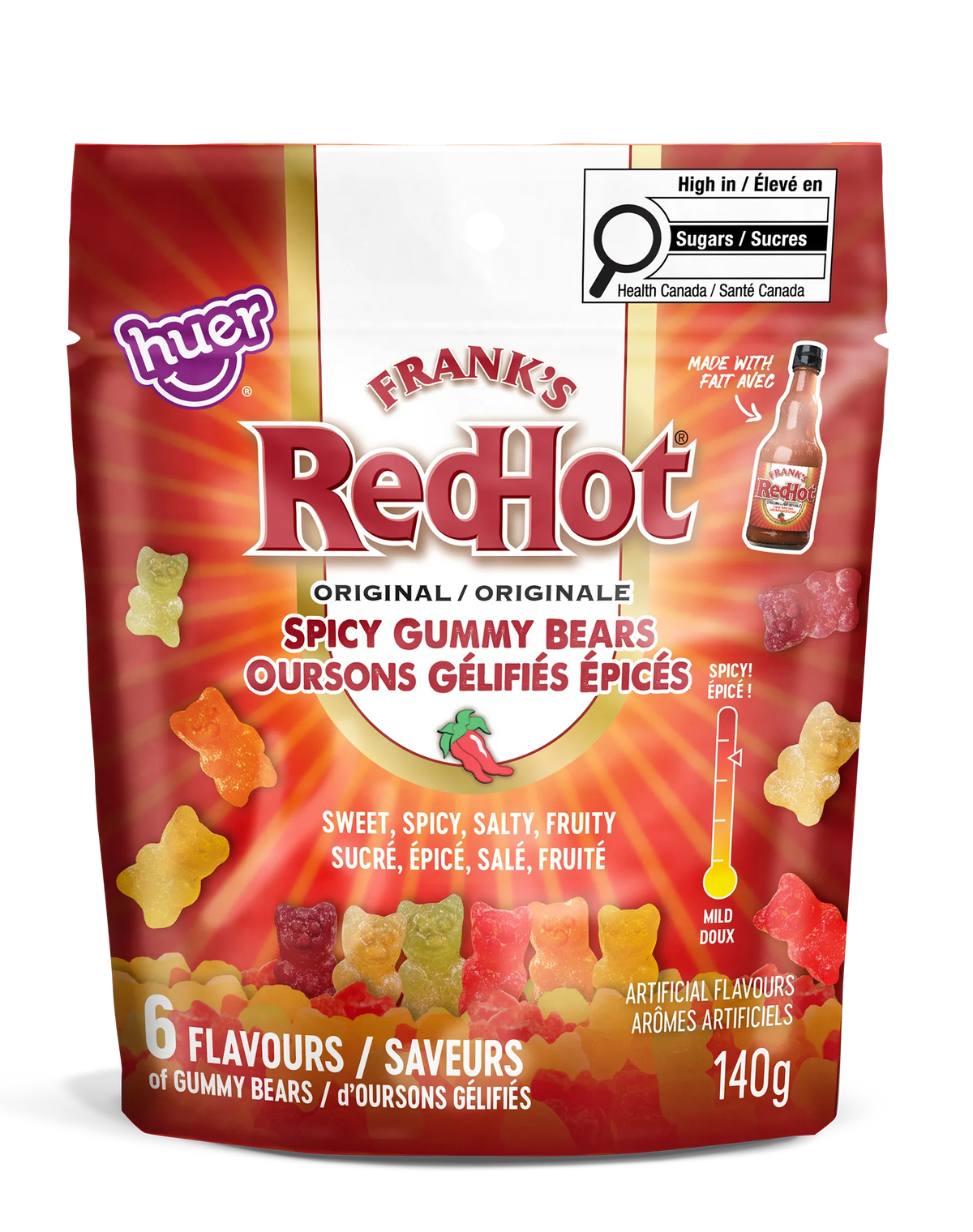 We took the chewy, fruity gummy bears you love — and turned up the flavour with the bold, iconic heat of Frank’s RedHot®. The result? A snack that’s the perfect combination of sweet and heat, and 100% delicious.