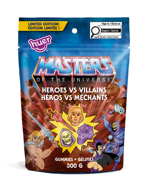 Masters of the Universe™ x Huer Heroes vs Villains Gummies combine great taste, nostalgic shapes, and a collectible twist.